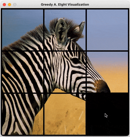 Greedy A. EIght is using Greedy Approach algorithm to find a solution to an eight puzzle. Greedy Approach is an algorithm that will find the current state local max and disregard the future states. Eight puzzle is a 3 by 3 squares with one blank square. The objective of this puzzle is to keep moving the blank square to reach the goal state.